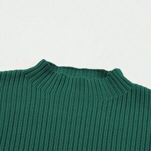 Green Casual Women's Minimalist Kangaroo Pocket Bat Wing Knitted Sweater top