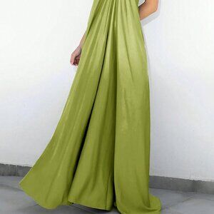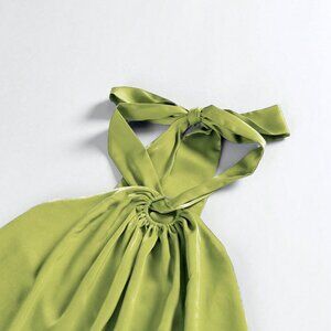 Green Casual Women's O-Ring Sleeveless Self-Tie Halter Backless Maxi Dress