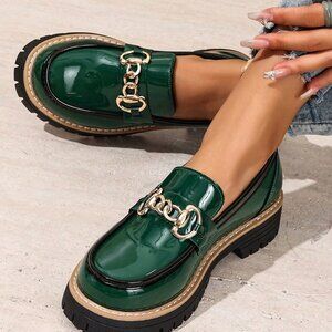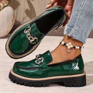 Elevate your casual wardrobe with these green loafers, designed for comfort and style. Slip into these round toe flats featuring a thick sole for added support and a relaxed fit. Perfect for everyday wear, these casual loafers combine ease with a touch of sophistication.