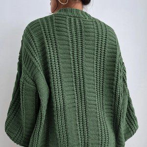 Green Casual Womens Solid Button Front Cable Knit Cardigan