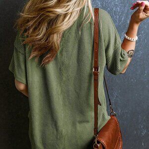 Green Casual Women's Twisted Threaded Short-Sleeved T-Shirt