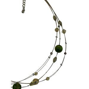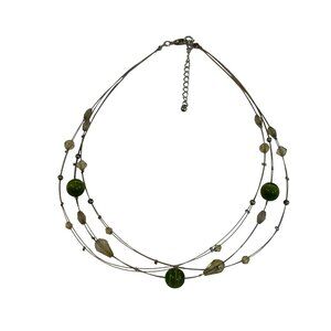 Green Cat's Eye Beaded Multi-Strand Necklace 15 - 17 inches Long