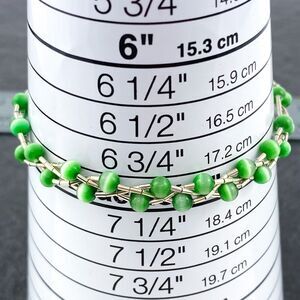Green Cat’s Eye Double Strand Bead Bracelet | Cone Tip Sterling Silver | 7.25"