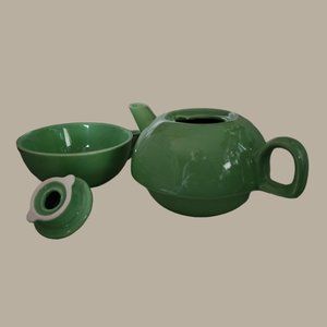 Elegant green ceramic teapot perfect for serving tea. Adds a touch of sophistication to your dining experience.