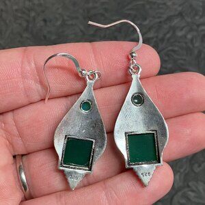 Earrings of green chalecedony stones in 925 silver boho settings with surgical steel ear wires.