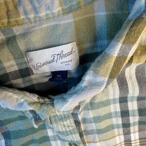 Casual and versatile button down from Universal Thread in a stylish green checkered print. Unisex sizing XXL for a comfortable, relaxed fit. Great for layering, workwear, or weekend style. Pre-loved in good condition with plenty of wear left.