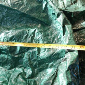 Open box or package. Never used. It was brought for a live tree but decided to stick with artificial. The material is tarp-like so it can be used for bulky items. I noticed a small hole when I was taking the photos, but it wasn't used before. Not sure if there are more but nothing obvious at first glance.