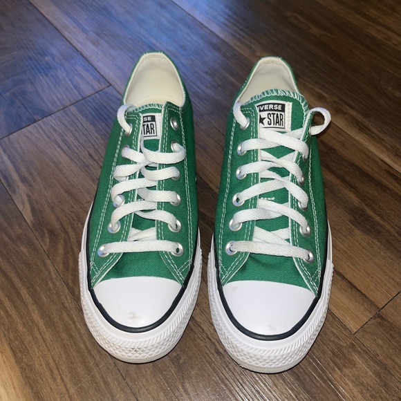 These classic Converse Chuck Taylor All-Stars feature a vibrant emerald green upper with a crisp white sole and white laces. They’re a size 6 for men (8 for women) and are in perfect condition, offering that timeless, stylish look of Converse