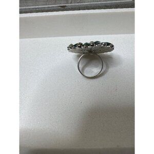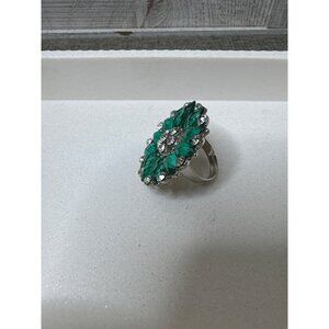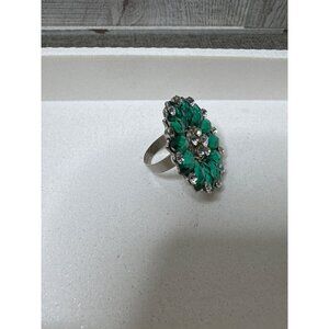 Green & Clear Rhinestone Adjustable Cocktail Ring Statement Floral Design