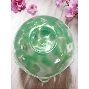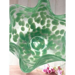 Green Clear Ruffled Confetti Glass Bowl Table Decor Vase