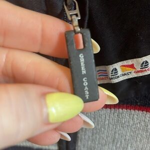 Stitching on chest is “Yachting Outfits The Original Green Coast”