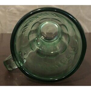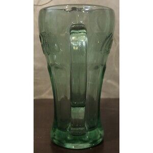 This vintage green Coca-Cola mug by Libbey is a must-have for any soda memorabilia collector. The mug features a handle and is made of heavy glass, perfect for enjoying a refreshing Coke float. The iconic Coke logo is prominently displayed on the side. This original piece of advertising dates back to a time when soda shops were a popular hangout spot and Coca-Cola was the drink of choice. Add this unique and rare item to your collection today.