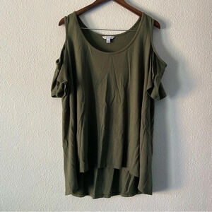 Green Cold Shoulder Short Sleeve Hi-Lo Top 2X Boutique