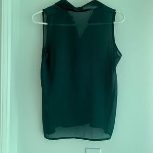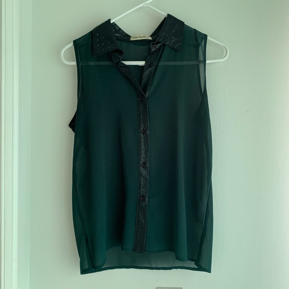 This blouse is super cute, see through matte like material. Super comfy and cute, in great condition other than small rip on back of collar shown in last picture. Feel free to ask any questions and make me an offer!