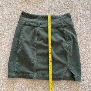 Green Corduroy Mini Skirt with Side Slit and Zipper