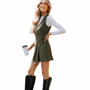 This adorable olive green corduroy romper is your new go-to for effortless style! Featuring a fun, playful cut with practical pockets to stash your essentials, a convenient back zipper, and a flattering short silhouette. The soft corduroy fabric adds texture and charm to any casual outfit. Perfect for weekend adventures, brunch dates, or just feeling cute while running errands. Size medium by Cupshe. A versatile piece that transitions seamlessly from day to night!