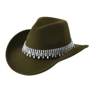 Green Cowboy Hat Rhinestone Band Western Rodeo Country Music Festival Party Cap