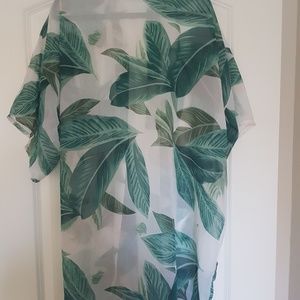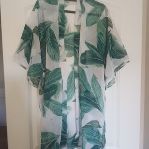 This layer-ready kimono is made from lightweight fabric and adorned with a floral design. worn once.