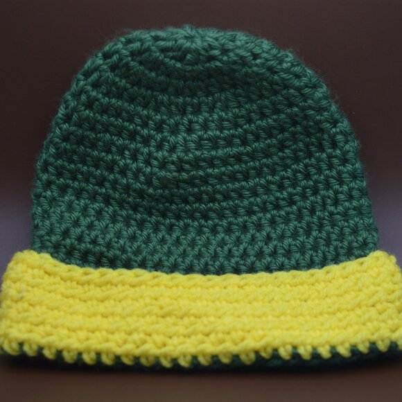 • Charming Design: Features alternating stripes of soft green and yellow yarn, showcasing a vibrant and cheerful color combination.