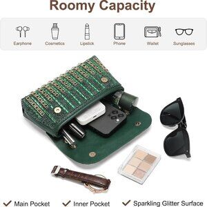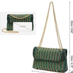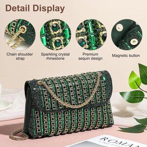 Green Crystal Evening Bag Clutch Purse Crossbody Wedding Party Elegant — Sparkle at your next event with this stunning bag!