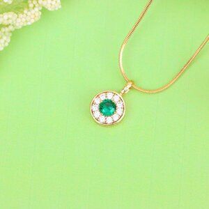 "Green Crystal Halo Pendant in Rose Gold – Round Design, XPPT1596