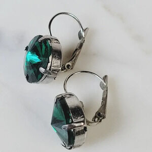 Green Crystal Necklace Earrings Set Silvertone Rolo Chain Adjustable Riv…