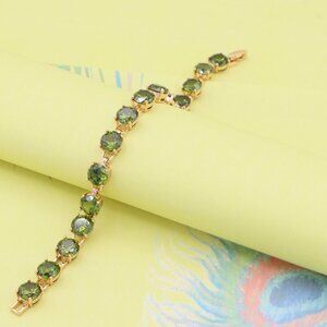 "Green Crystal Rose Gold Bracelet with Round Stones, XPBL1028