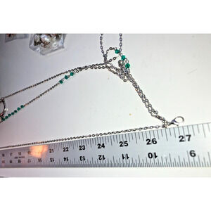 Green Crystal Silver-Tone Layered Chain 27 Inch Necklace!