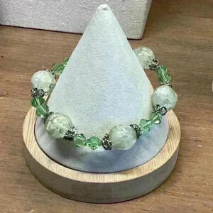 Green Crystal and Glass Beaded Bracelet Vintage