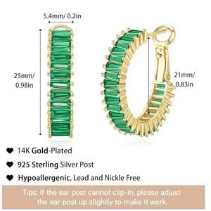 Green Cubic Zirconia 14K Gold Plated Hoop Earrings Lightweight Chunky CZ