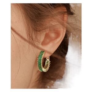 Classic Green Cubic Zirconia and 14K Gold Plated Hoop Earrings. One of the biggest jewelry trends right now in Hollywood, a sparkling row of rhinestones adorn each hoop. These hoops are perfect for everyday wear