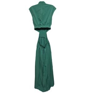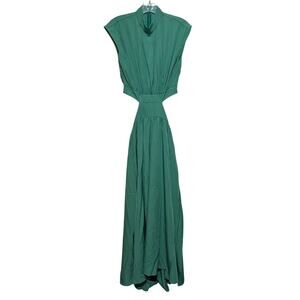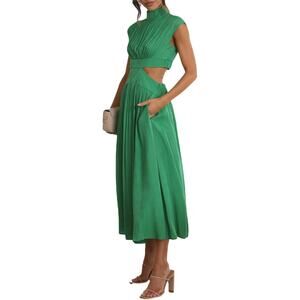 Green Cutout Midi Dress Womens XS Mock Neck Sexy Sleeveless Pleated Party Dress