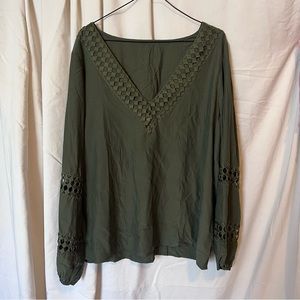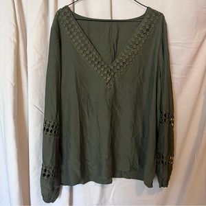 Green Cutout Sleeve Peasant Style V-Neck Blouse So beautiful Barely worn