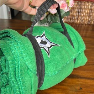 Green Dallas Stars Fleece Blanket new with carry on straps