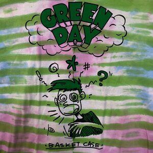 Green Day Basket Case Tie Dye Rock Tee Large the shirt Generally measures 21 inches pit to pit and 29 inches long amazing graphic one of a kind tie dye amazing rock tee