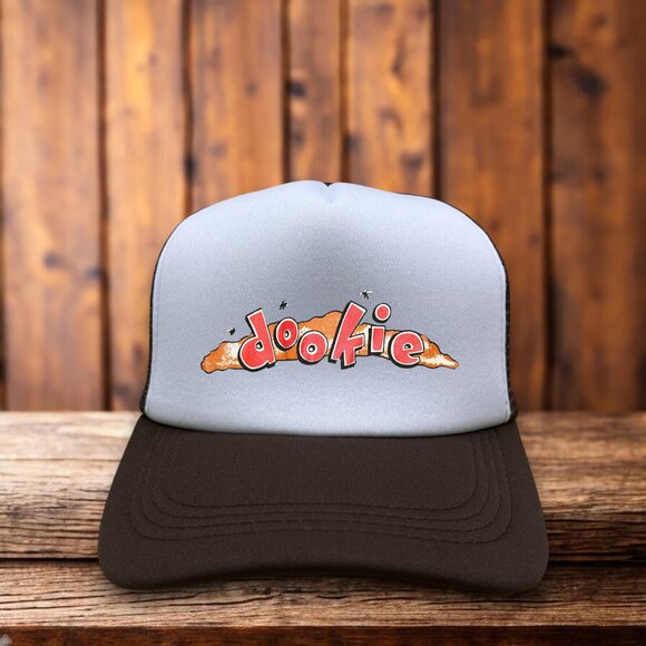 Green Day Dookie Mens Trucker Hat Brown Snapback Rare Logo 90s Punk Rock Cap