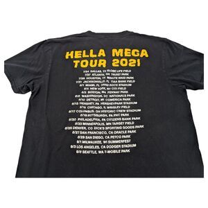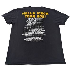 Official Green Day Hella Mega Tour 2021 T-shirt featuring double-sided graphics with vibrant tour artwork. A great piece for any punk rock or alternative band tee collector.