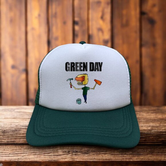 Green Day Mens Trucker Hat Dark Green 90s Punk Rock Baseball Cap