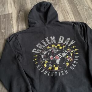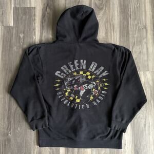 Green Day Revolution Radio Concert Tour Hoodie Mens Size M Black Zip Up