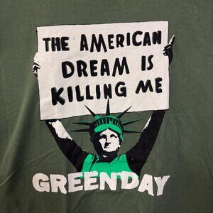 Green Day the American dream is killing me rock Tshirt size large Generally measures 21 inches pit to pit and 30 inches long never worn first hand overstock great condition with an amazing graphic