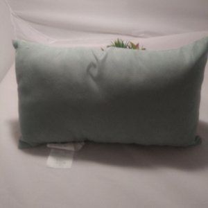 Green Throw Pillow, with white and three buttons on the front. The back is all green, cover 100% polyester. Made in China.