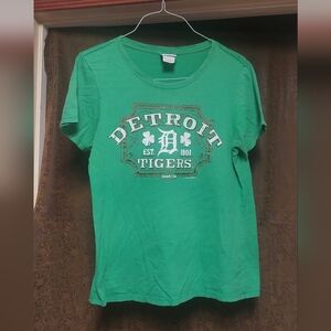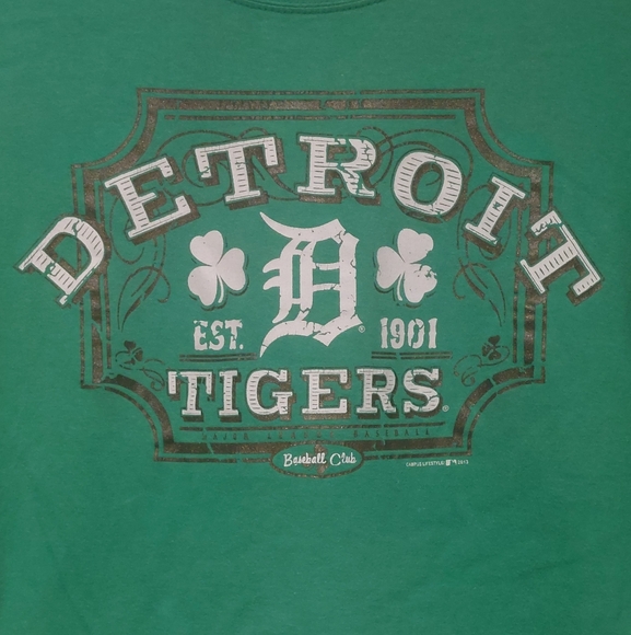Stylish green tee featuring a bold Detroit Tigers graphic. Perfect for sports fans.