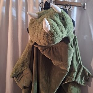 Cozy up with this adorable green dinosaur plush snuggy while playing with there dinosaur stuffed animals . Perfect for adding a rainy day or bedtime stories snuggie is 51.5 " wide top to bottom is 38" bundle more items for bigger deals.