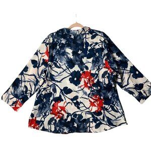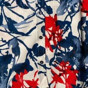 Green Dog Blouse Women 1X Red White Blue Button Floral Lightweight Crinkle Style