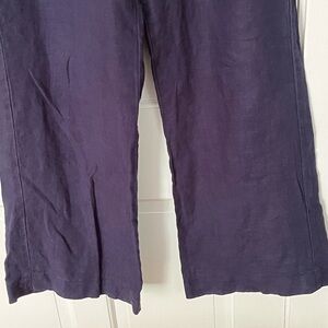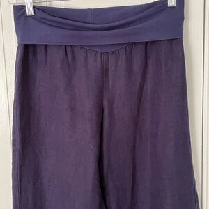 Green Dragon 100% Linen Navy Wide Leg Pull On Pants Size M Beach Coastal Grandma