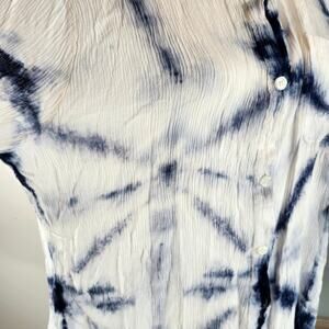 Green Dragon Women's Blue and White Tie Dye Longsleeve Button Up Top Size Large