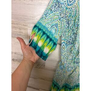 Green Dragon Women’s S Blue Rayon V-Neck Swim Cover-Up Tunic Top 3/4 Sleeve