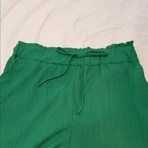 Stylish green pants with a drawstring waist. Perfect for casual wear. Wide leg , new without tags