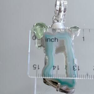 Add a touch of nature-inspired elegance to your jewelry collection with this stunning green druzy geode pendant! Set in 925 sterling silver, this unique handcrafted piece features a dazzling druzy geode, complemented by the delicate sparkle of prehnite gemstones and the soft glow of a cultured pearl.