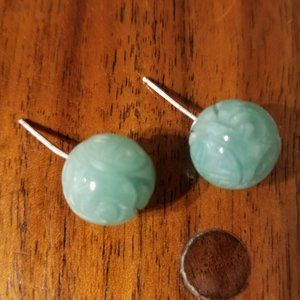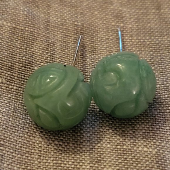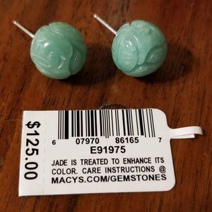 Green Dyed Jade Carved Ball Stud Earrings by R.H. Macy & Co. Fine Jewelry NWT